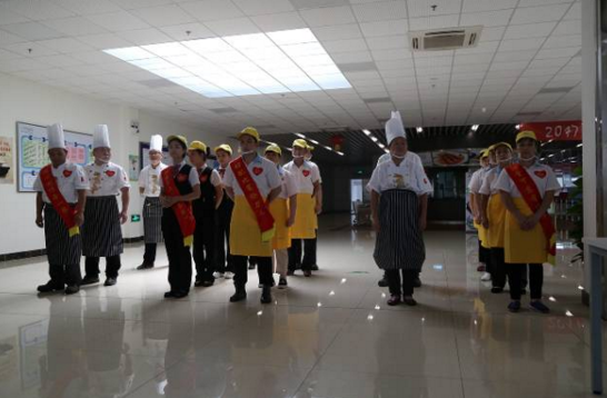 比赛分为厨艺比拼、异常投诉处理、切配技能、面点技能、菜量分配五个项目各项目均为现场实操,以11位领导现场评分综合取平均值最终评比。