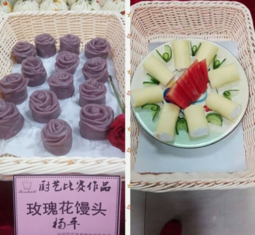 二等奖:杨平的“玫瑰花馒头”、刁金花的“榴莲蛋糕”